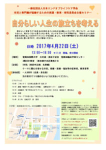 - 2017年4月22日(土)13:00~16:00 *12:30開場,受付開始